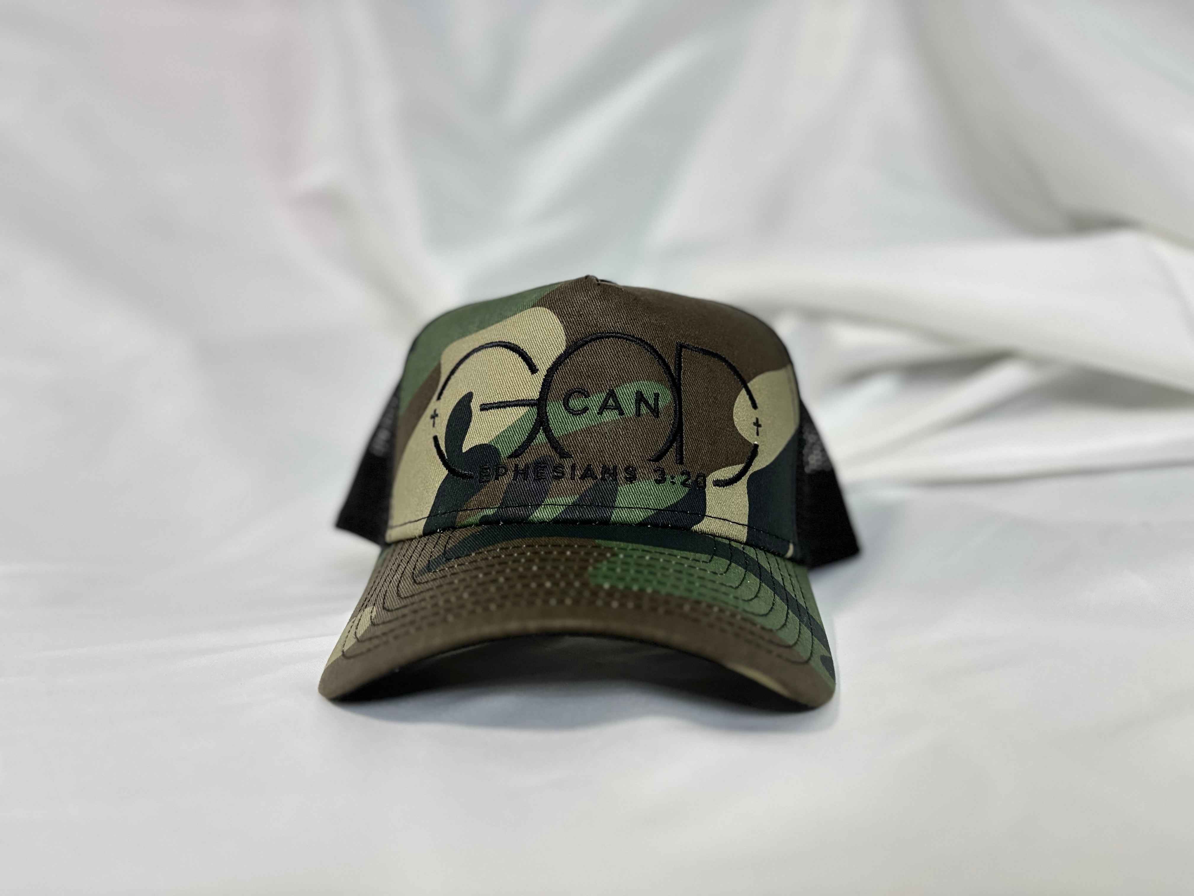This 5-panel cap "God Can" Snapback Trucker Hat has mesh mid and back panels for superior ventilation and a trend-right snapback closure for an easily adjustable fit.
